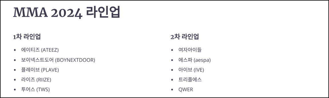 4. MMA 2024 라인업 및 공연 정보