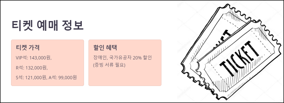 공연의 티켓 구매 방법 및 가격, 할인 정보는 아래를 참고하세요.