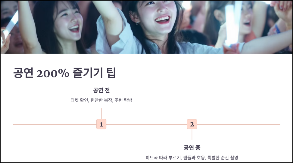 콘서트를 더욱 즐길 수 있는 몇 가지 꿀팁을 소개합니다.