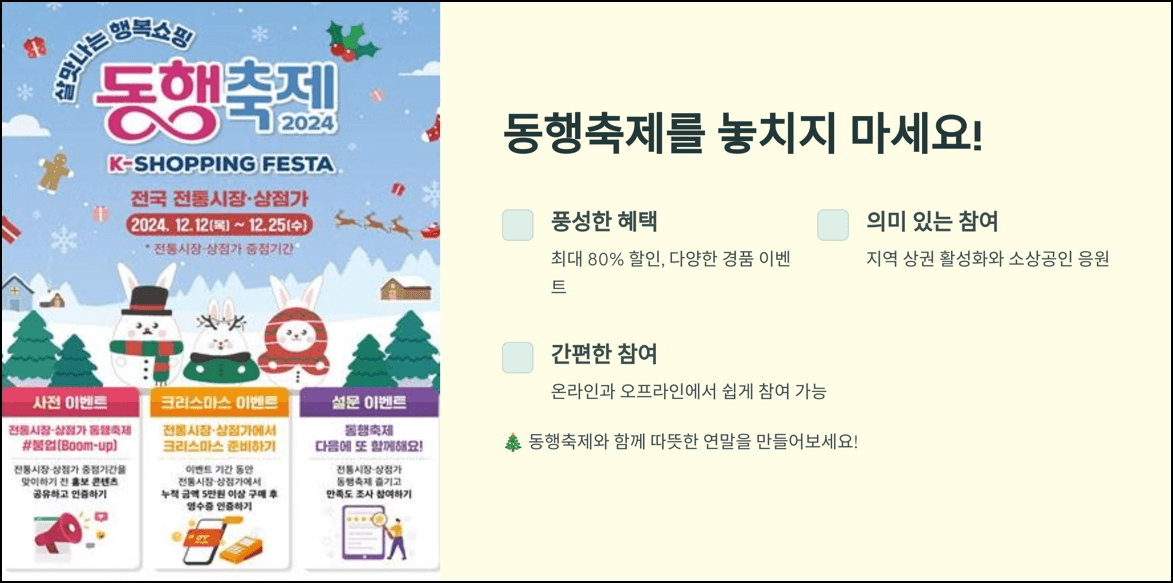 2024년 12월 동행축제는 소비자와 소상공인이 상생하며 함께 즐길 수 있는 특별한 축제입니다.
