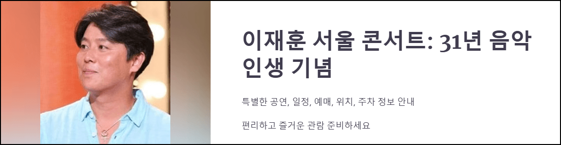 이재훈 서울 콘서트는 그의 31년 음악 인생을 기념하는 특별한 공연입니다. 이번 글에서는 공연 일정과 예매 방법, 연세대학교 대강당 위치 및 주차 정보까지 자세히 안내드리겠습니다.