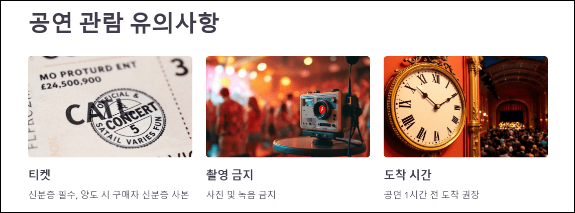 공연 관람 시 유의해야 할 사항을 미리 확인하고, 더 즐겁고 편리한 관람을 경험해보세요.