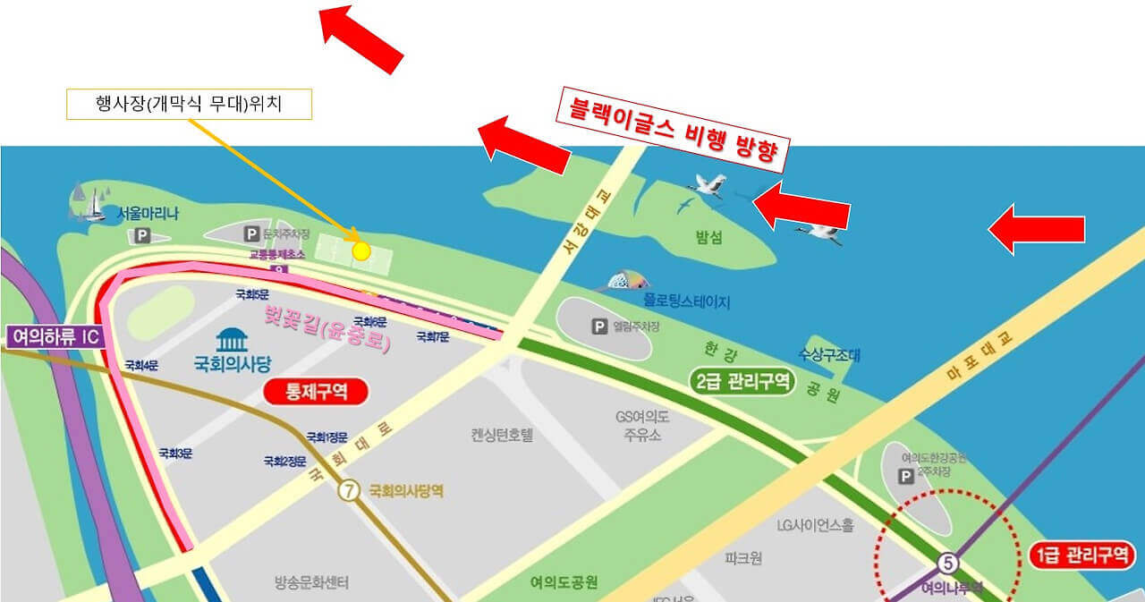 - 비행경로 : 하남시 방면 → 한강 → 여의도
